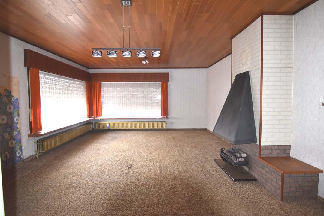 Gelijkvloerse woning open bebouwing met omheinde zongerichte. tuin (niet aangelegd) met tuinhuis op 8a30. Afwerking bouwjaar 1970: ingerichte keuken, badkamer, garage,. 4 slaapkamers, scheerzolder.