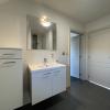 Badkamer met apart toilet, inloopdouche, badmeubel en aansluiting wasmachine.