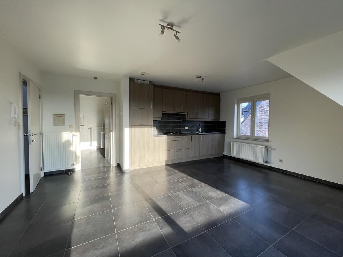 Het appartement is midden in het centrum van Hulshout gelegen en heeft volgende indeling: