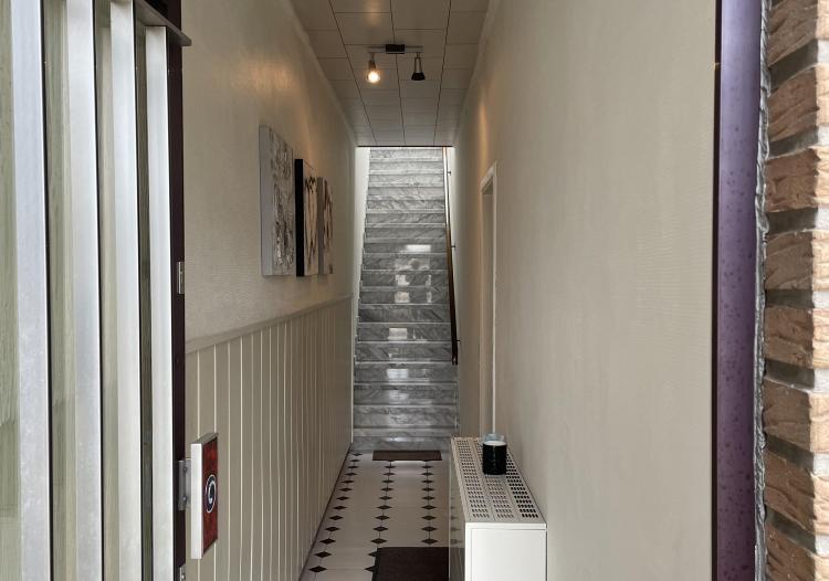 Op de 1ste verdieping bevindt zich de wooneenheid met ruime leefruimte, open keuken, 1 slaapkamer met terras en badkamer.