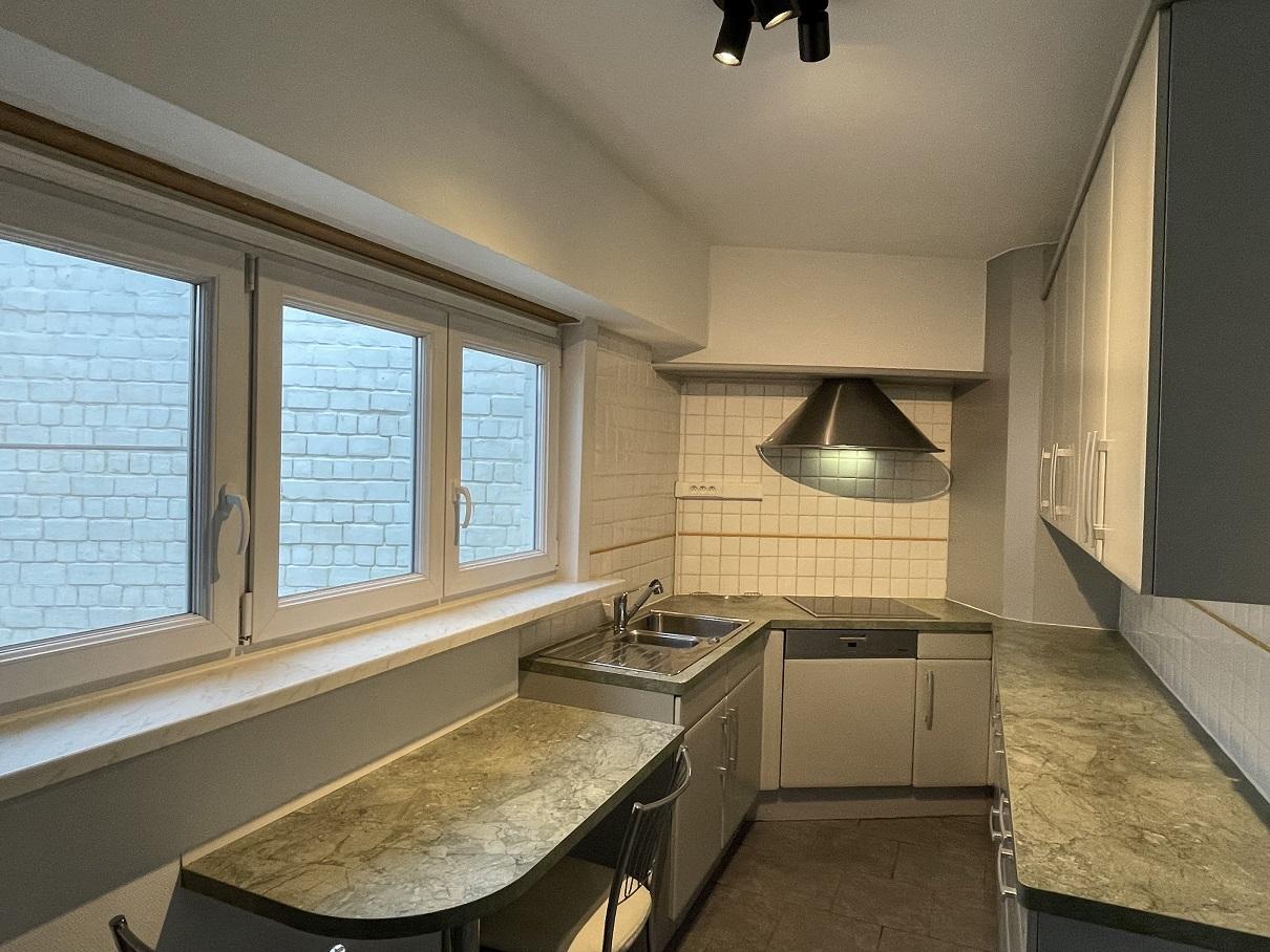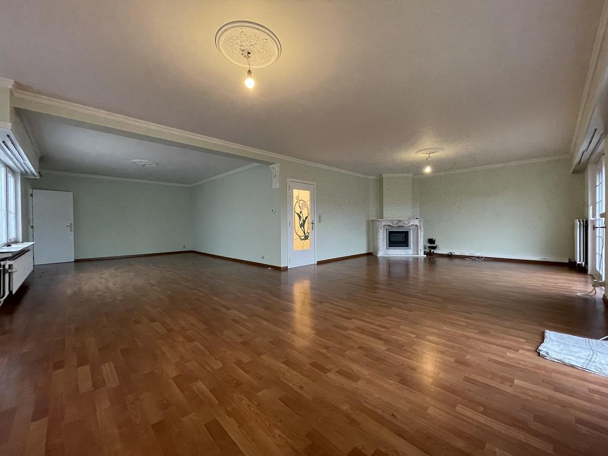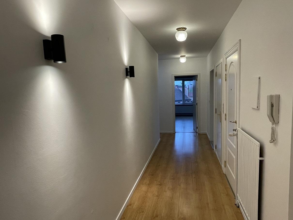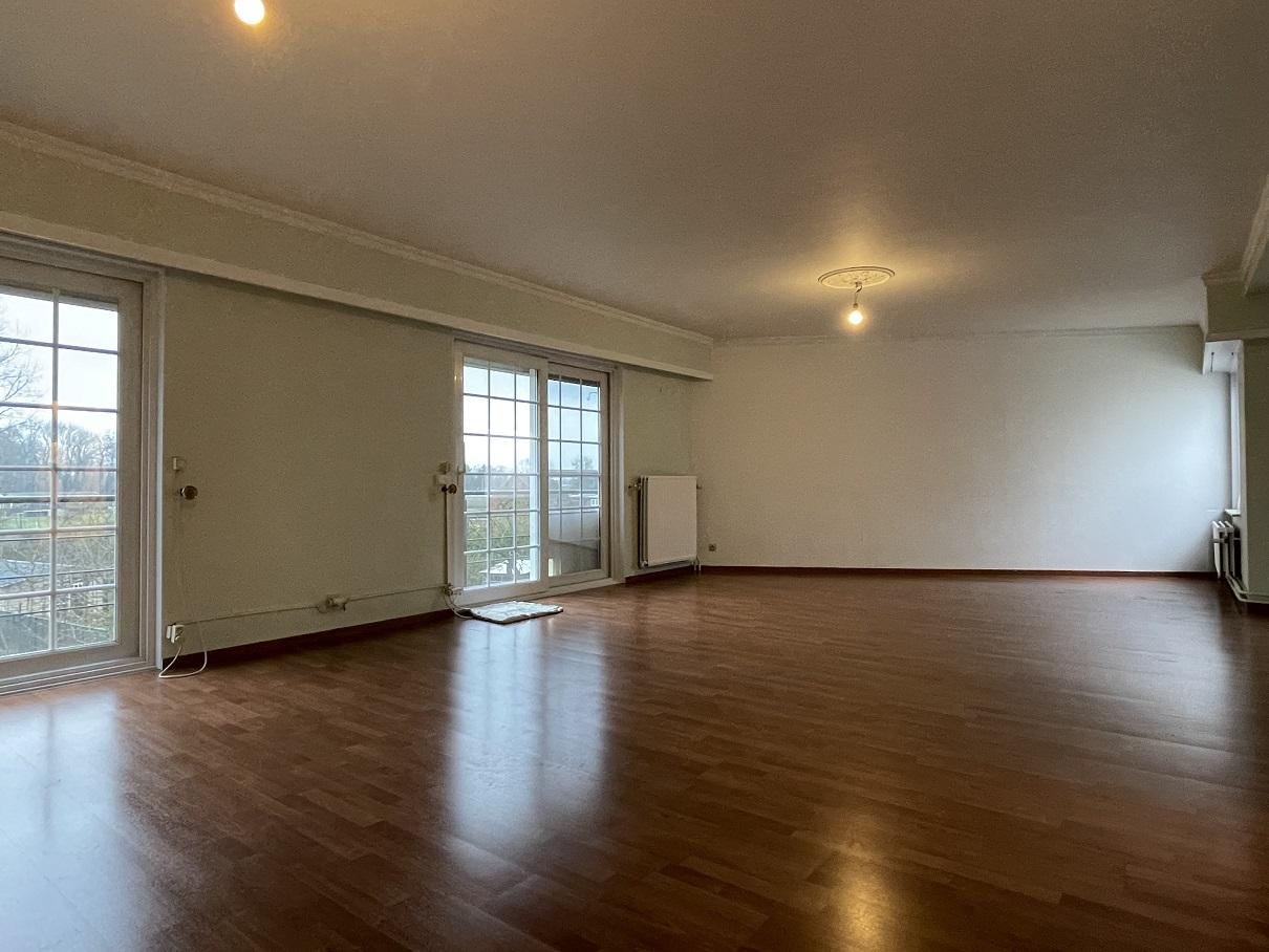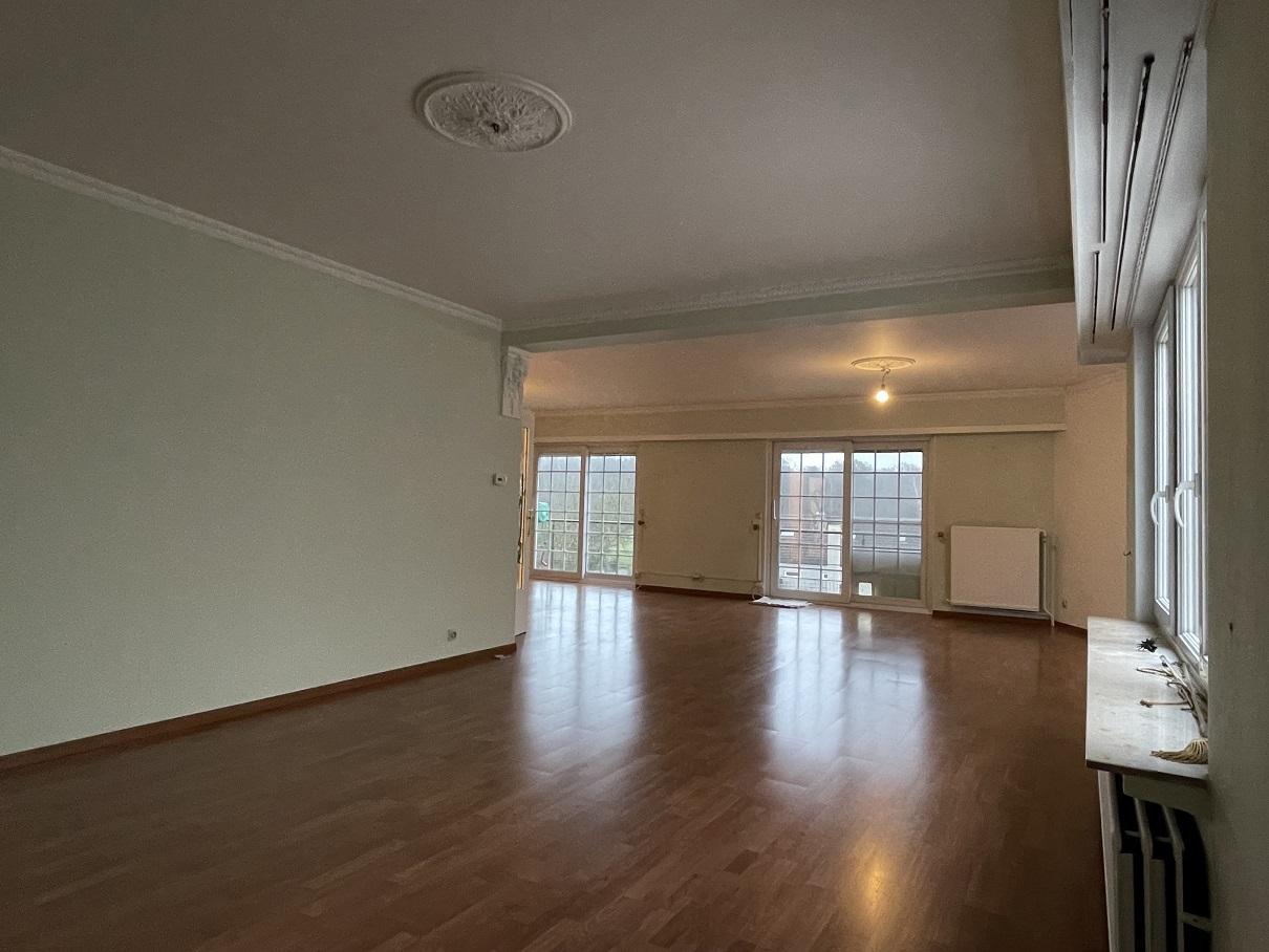 Centraal tegenover de kerk gelegen gerenoveerd gigantische (191m²) penthouse met 3 ruime slaapkamers, kelder en 2 garageboxen achteraan.