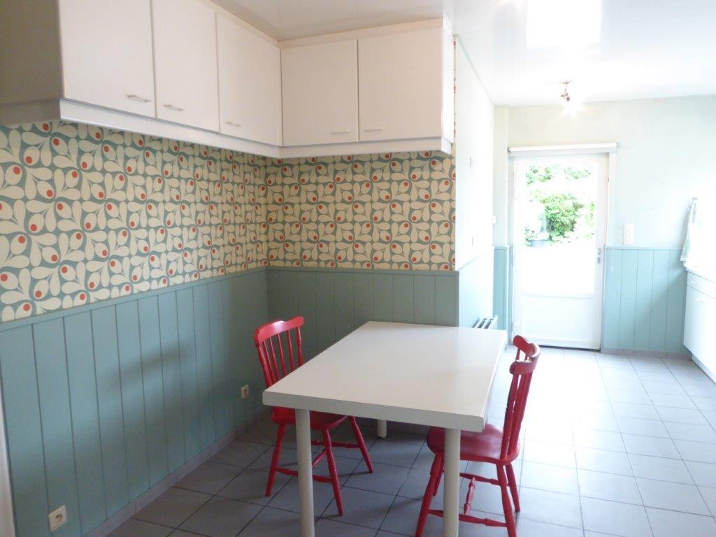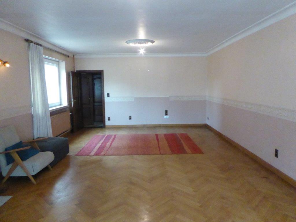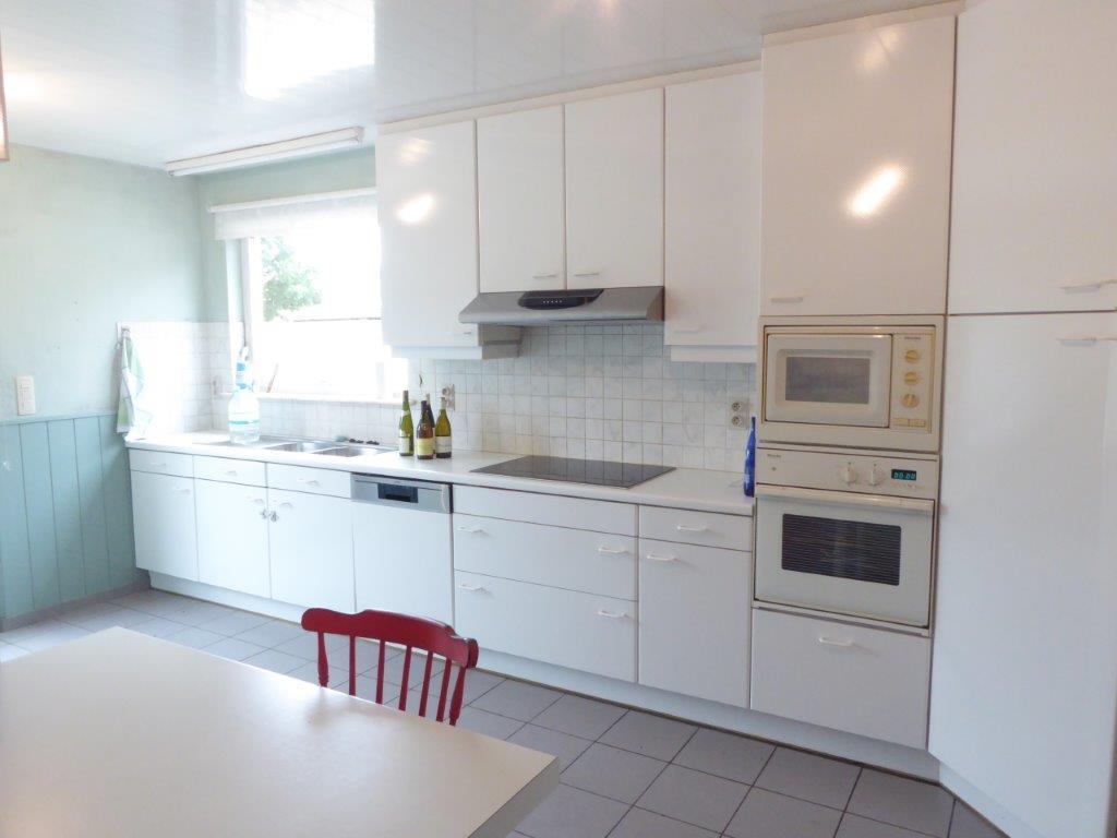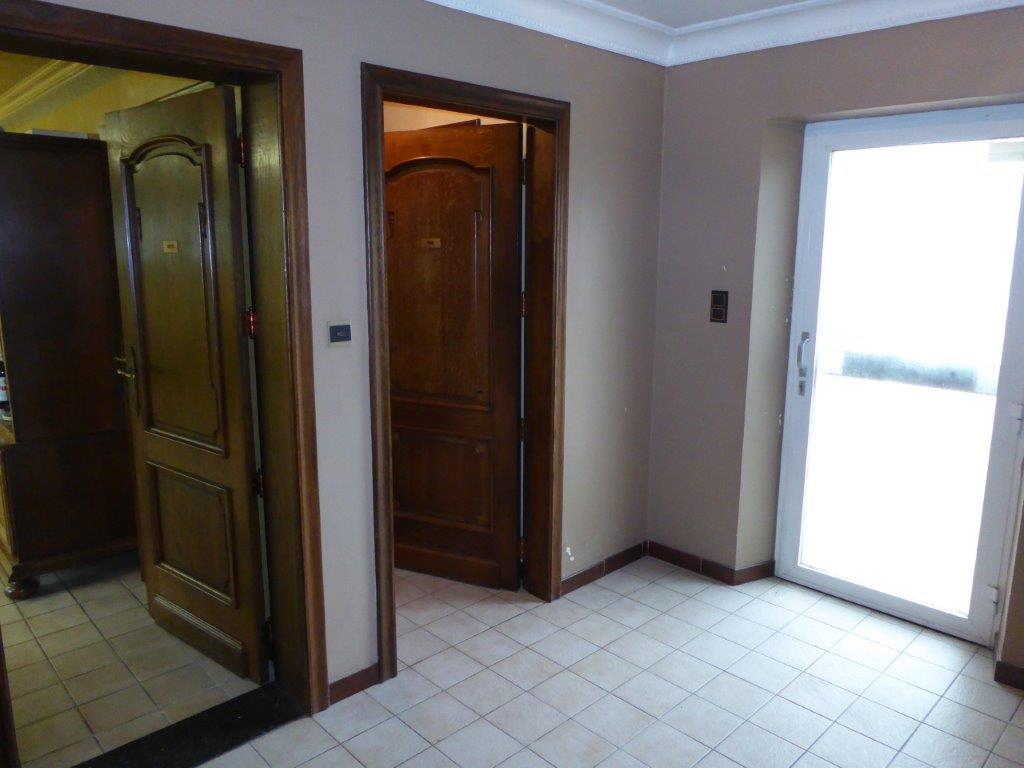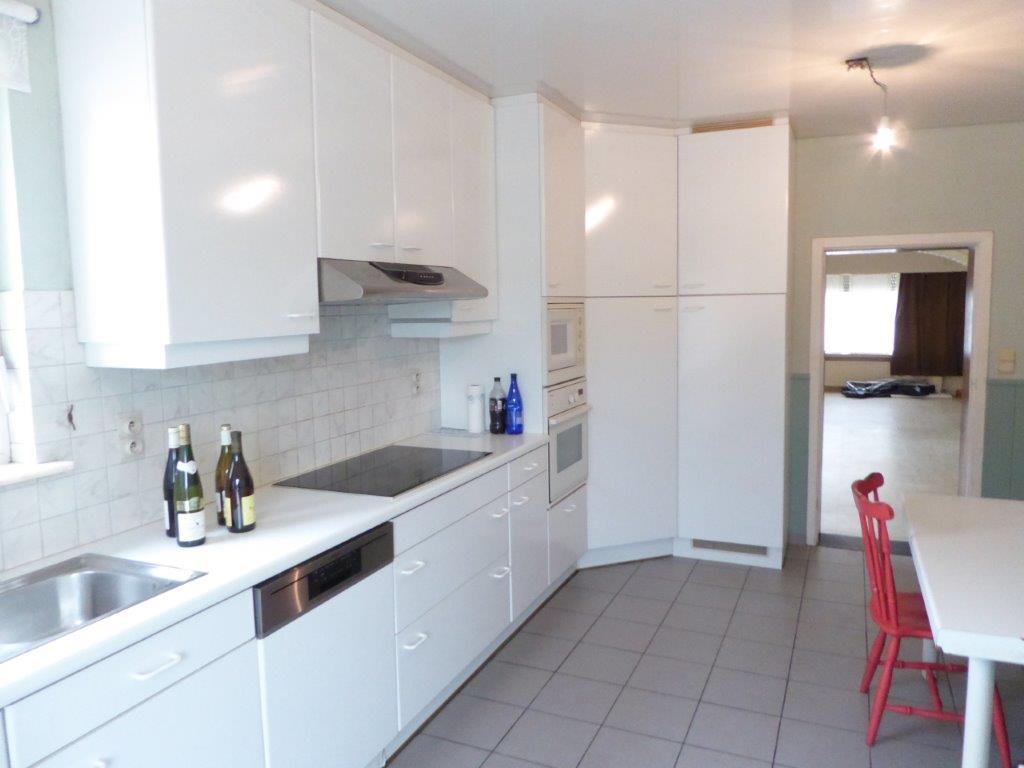 Zeer ruime woning met aparte inkom (vroegere dokterspraktijk), 6 slaapkamers, garage voor 2 auto's en tuin.