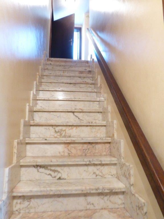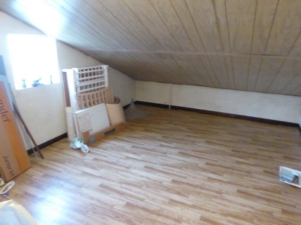 verdieping: badkamer met ligbad, toilet en dubbele lavabo, 2 kleinere kamers (onder schuinte van het dak), 3 ruime kamers, 1 extra ruime kamer (ruimte voor een inloopdressing)