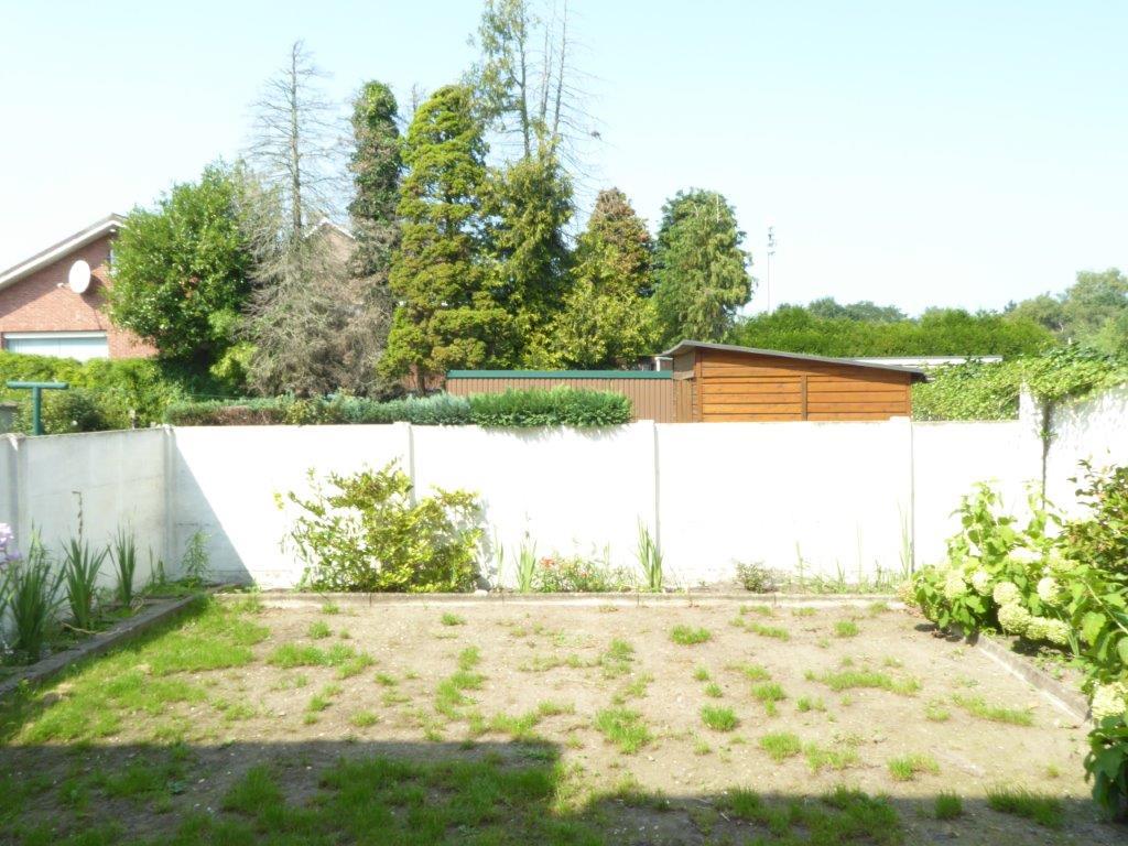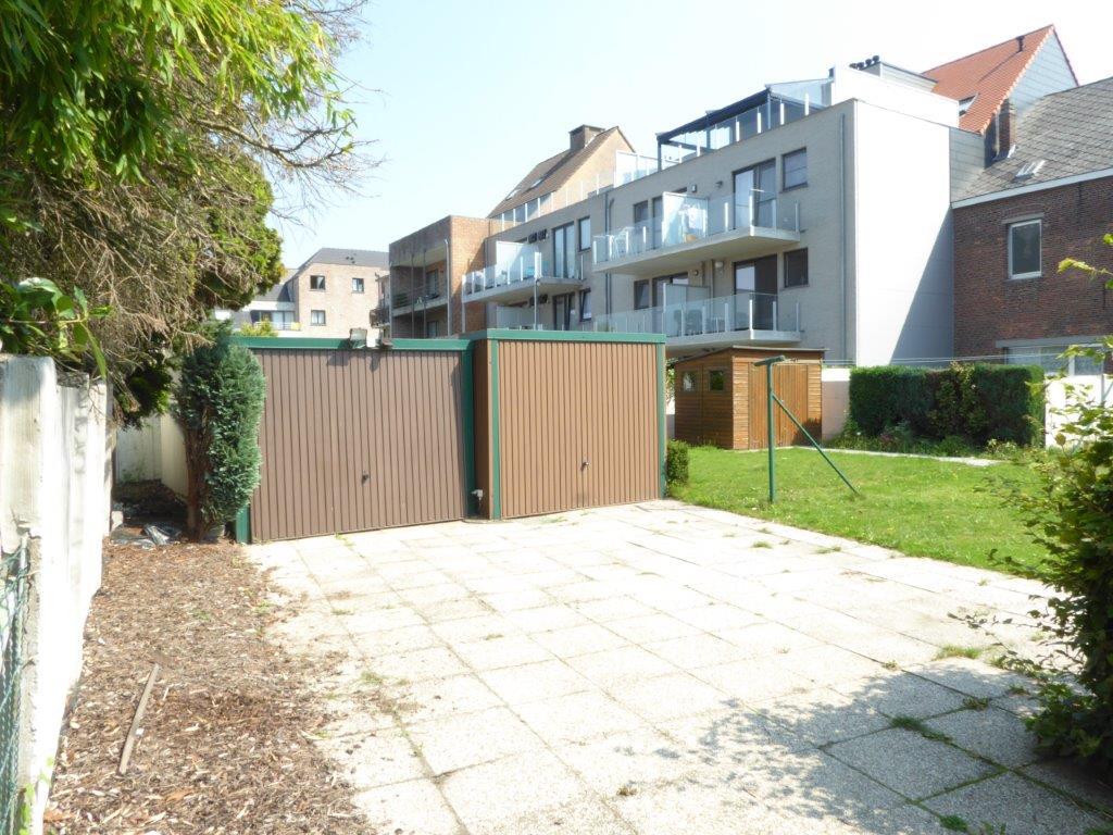 Tuintje met achteraan een garagebox bereikbaar via een achter uitweg.