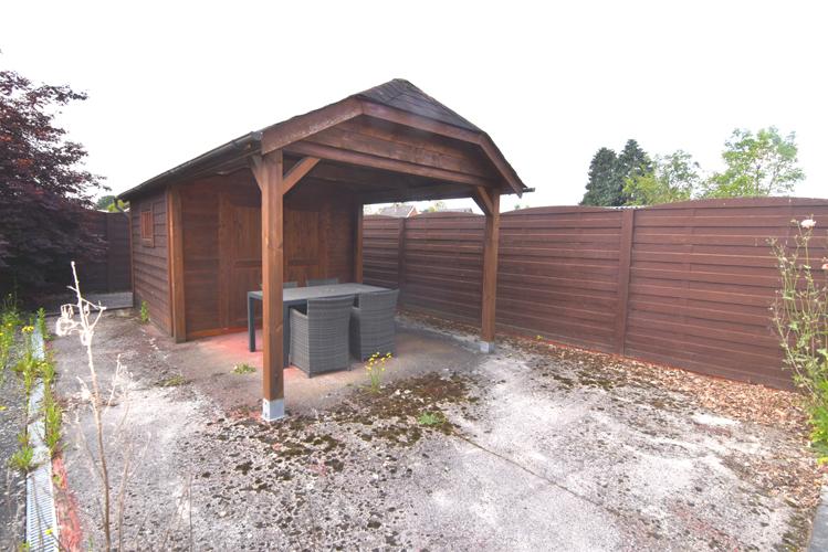 Gelijkvloerse woning open bebouwing met omheinde zongerichte. tuin (niet aangelegd) met tuinhuis op 8a30. Afwerking bouwjaar 1970: ingerichte keuken, badkamer, garage,. 4 slaapkamers, scheerzolder.